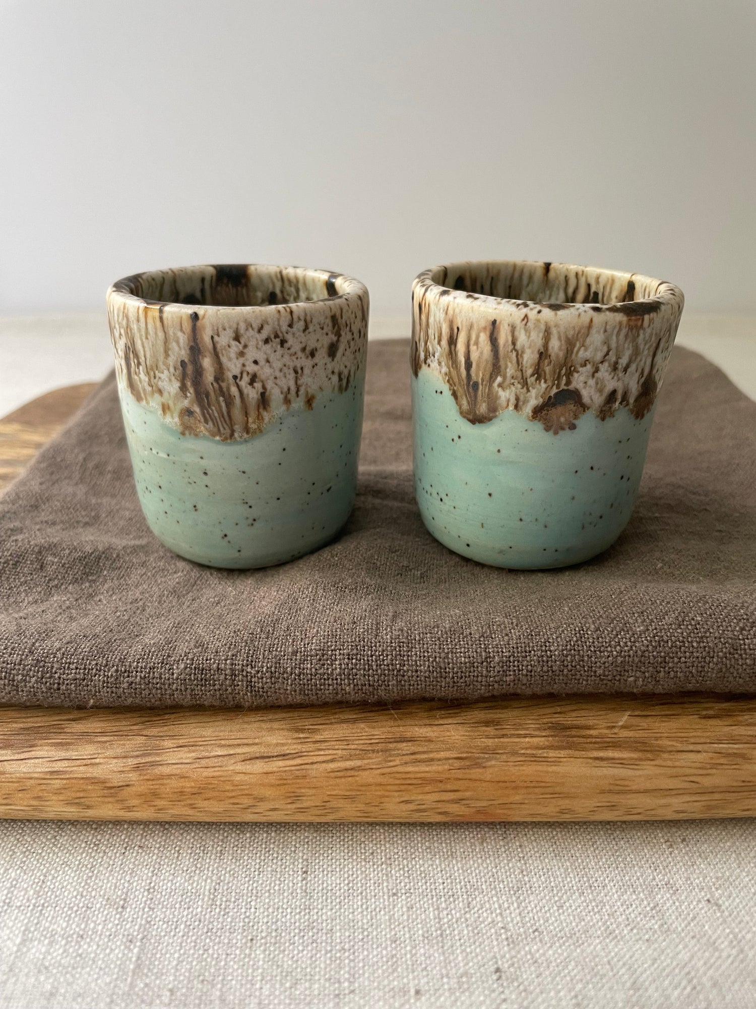 Blue and Birch Espresso Cups, Speckled Clay, Set of 2