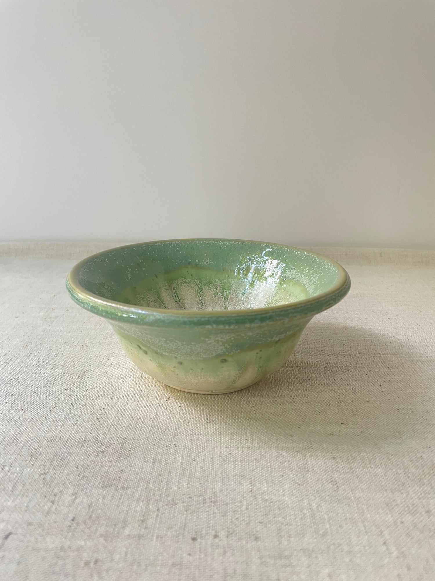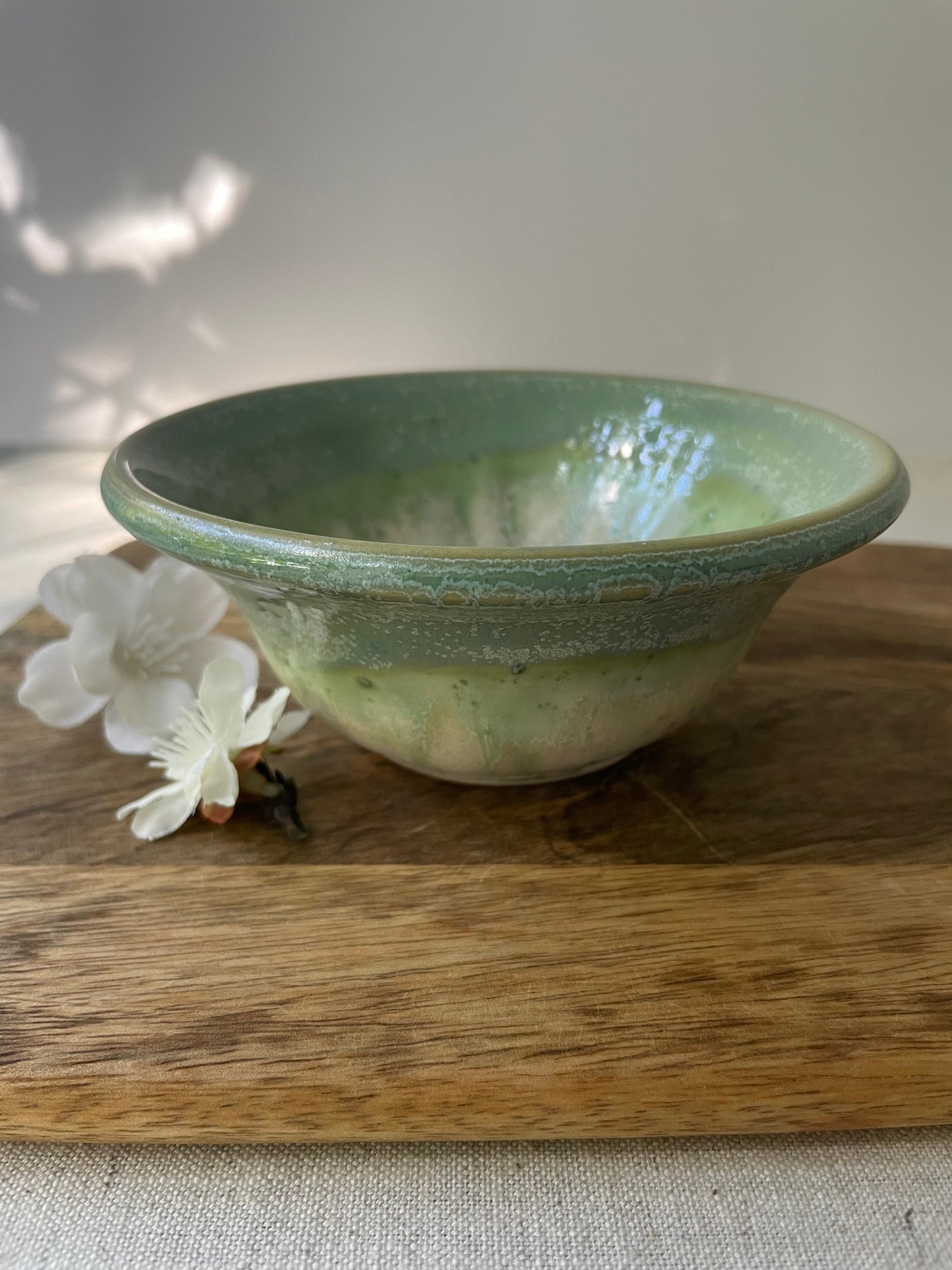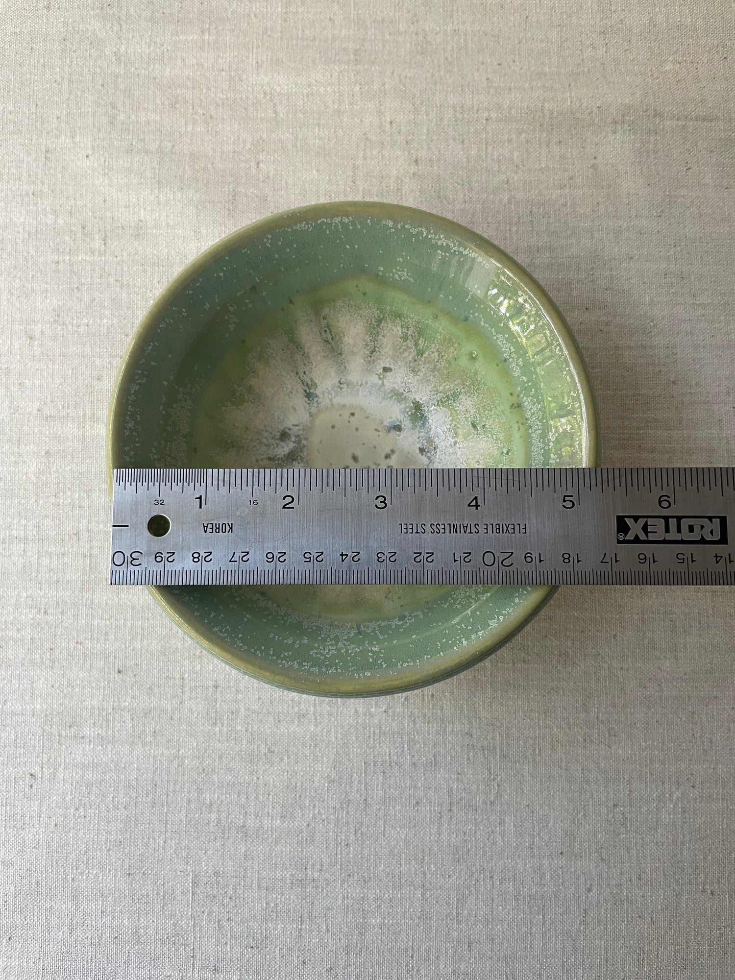 A creamy glaze flecked with green is highlighted along the rim with an iridescent green for an elegantly rustic impact on your table. Enjoy a fresh presentation of dips, salted nuts, sides, fresh berries, sauces and more.