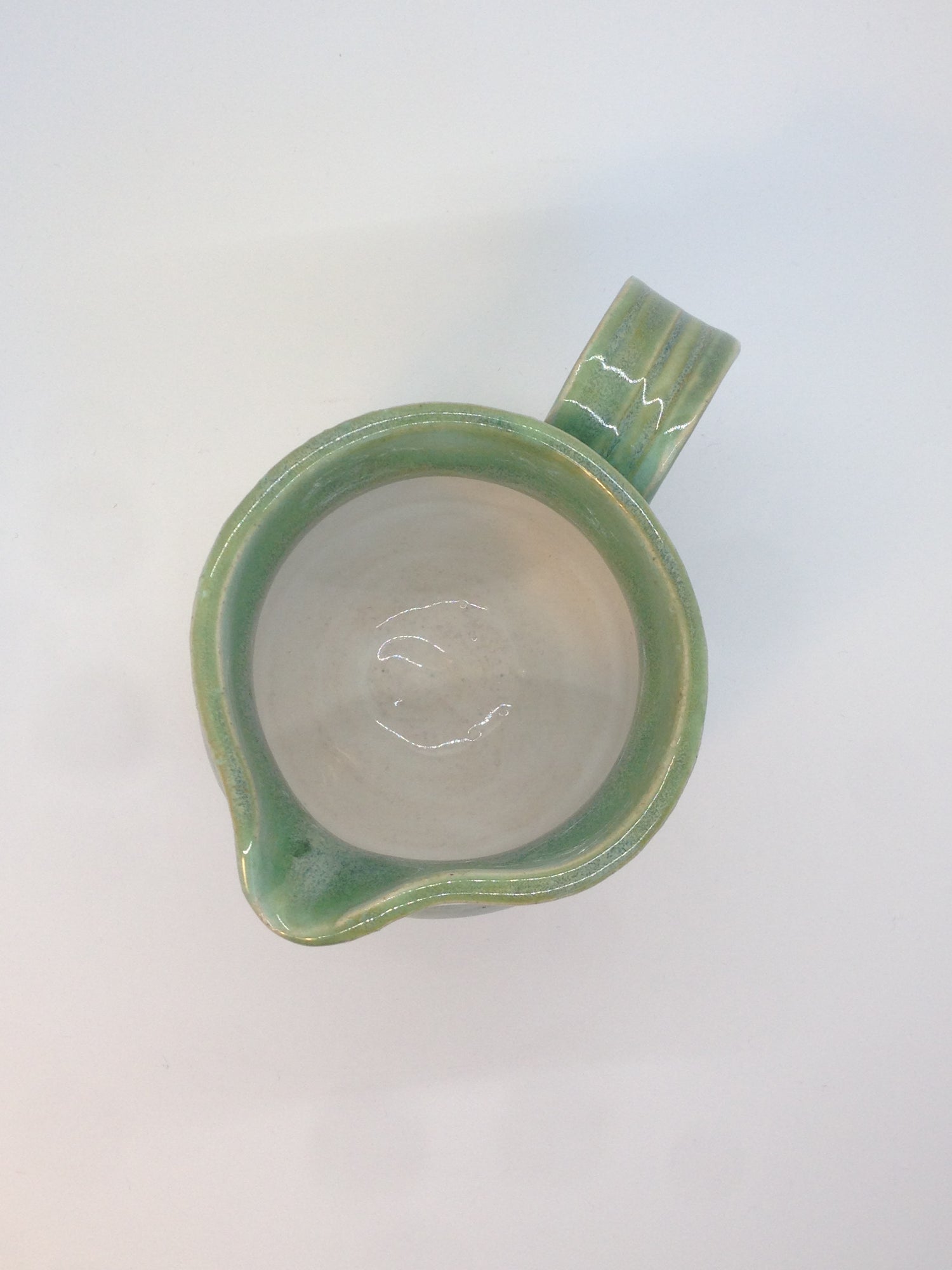 Glossy green and soft white make these pitchers a fresh treat in themselves. For the largest jug, fill with milk, water, hot cider, juices, lemonade, or sauces for a crowd. The medium and small can be used for syrup for waffles or pancakes, hot-fudge sauce for ice cream, mushroom gravy for mashed potatoes, rum sauce for Christmas pudding, and more. The smallest easily doubles as a creamer. The trio would also look beautiful displayed with flowers together or singly.